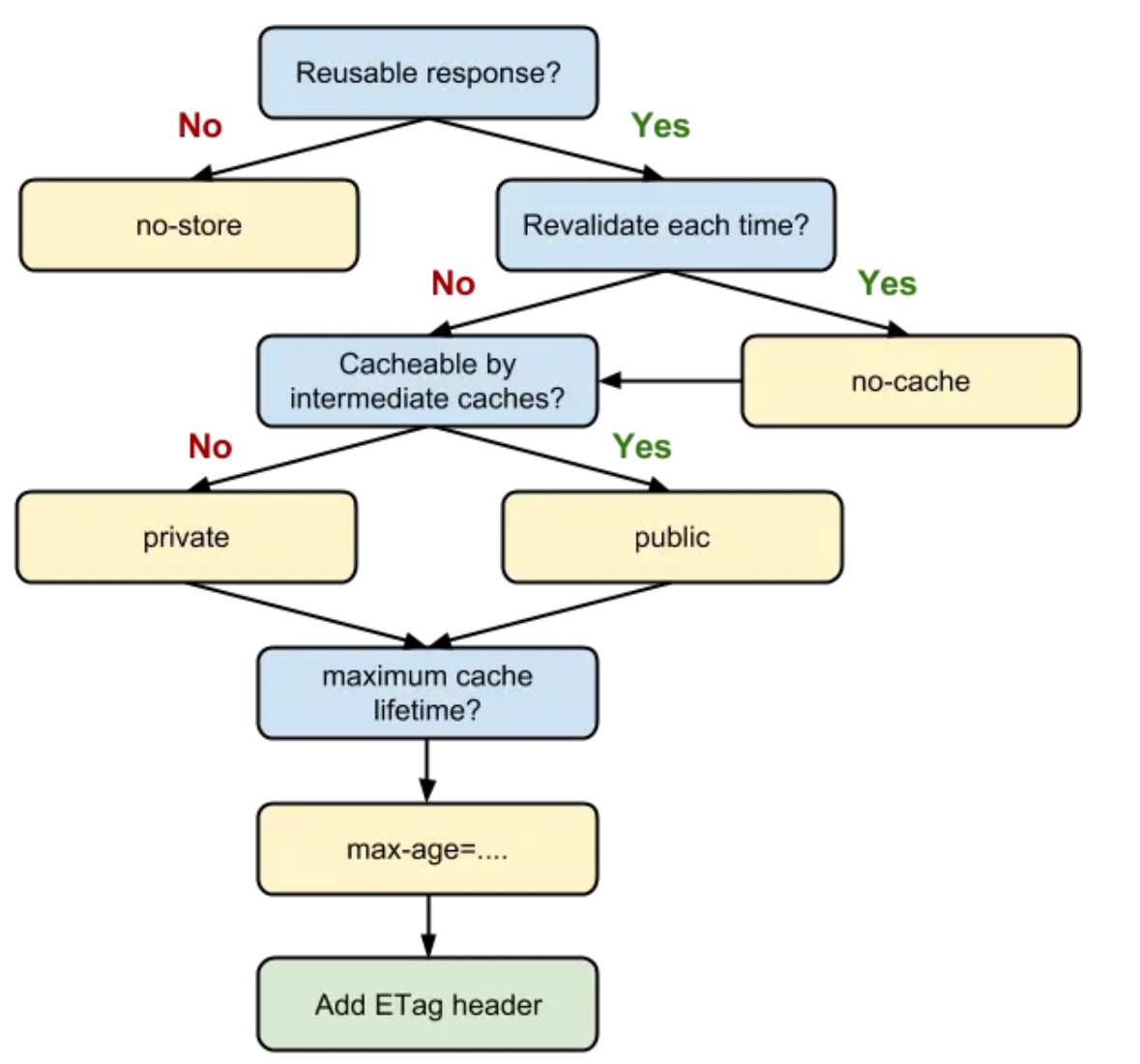 如果我们为资源设置了 public,那么它既可以被浏览器缓存,也可以被代理服务器缓存;如果我们设置了 private,则该资源只能被浏览器缓存。private 为默认值。no-store与no-cache: